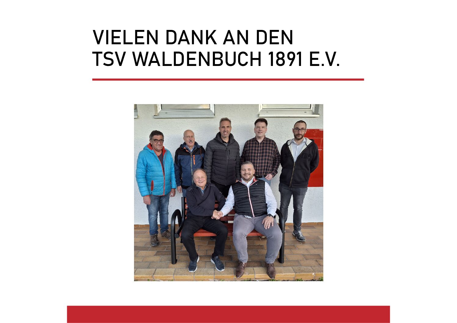 Die Vorstandschaft unseres Kooperationsvereins TSV Waldenbuch 1891 e.V. überreichte uns am 13.10.2025 eine hochwertige Sitzbank. Die Übergabe fand auf unserem Sportgelände statt, wo die Bank nun am Fußballplatz ihren festen Platz gefunden hat.